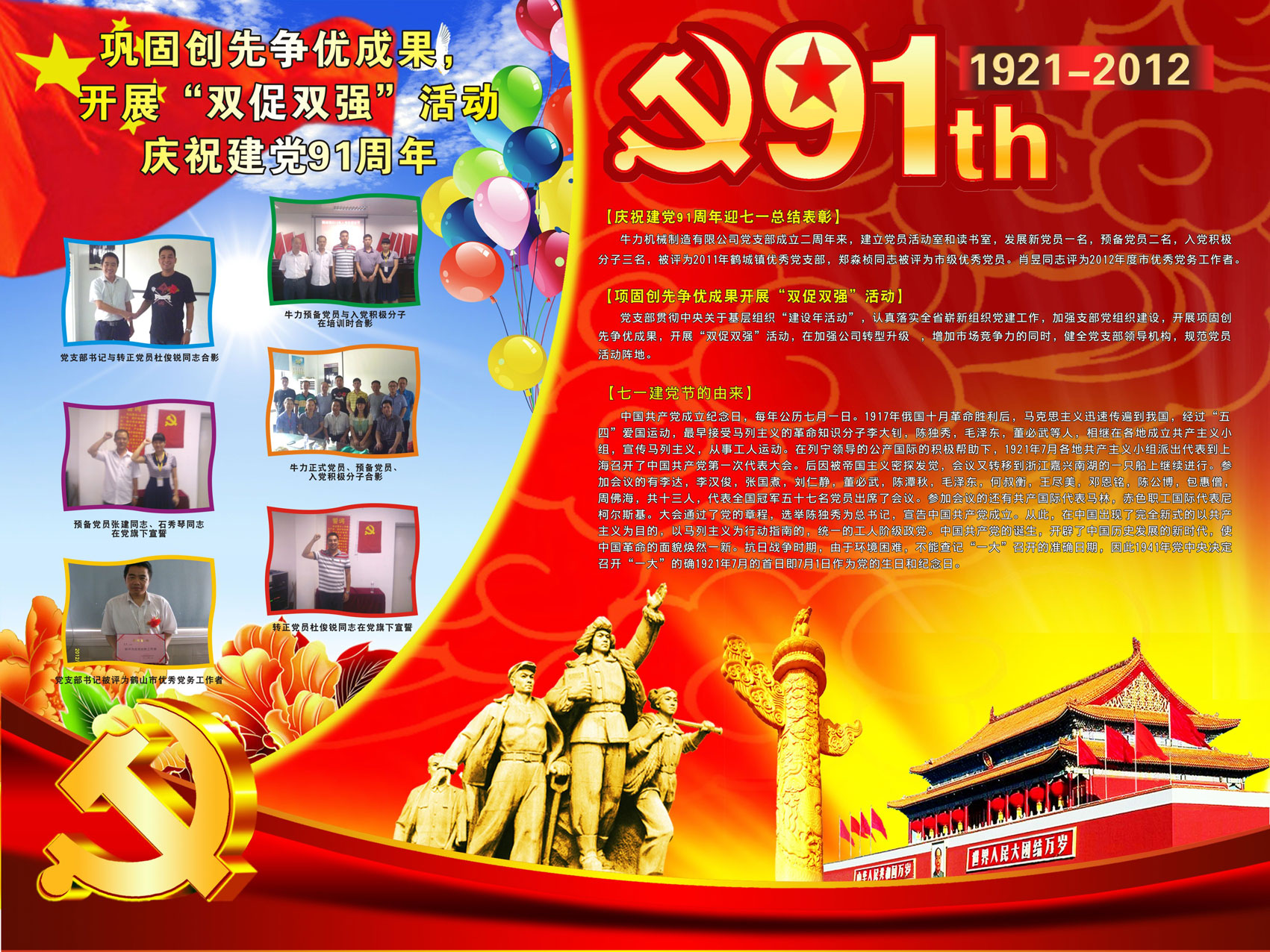 牛力機械制造有限公司黨支部成立二周年來,建立黨員活動室和讀書室,發展新黨員一名,預備黨員二名,入黨積極分子三名,被評為2011年鶴城鎮優秀黨支部,鄭淼楨同志被評為市級優秀黨員。肖昱同志被評2012年度市優秀黨務工作者。