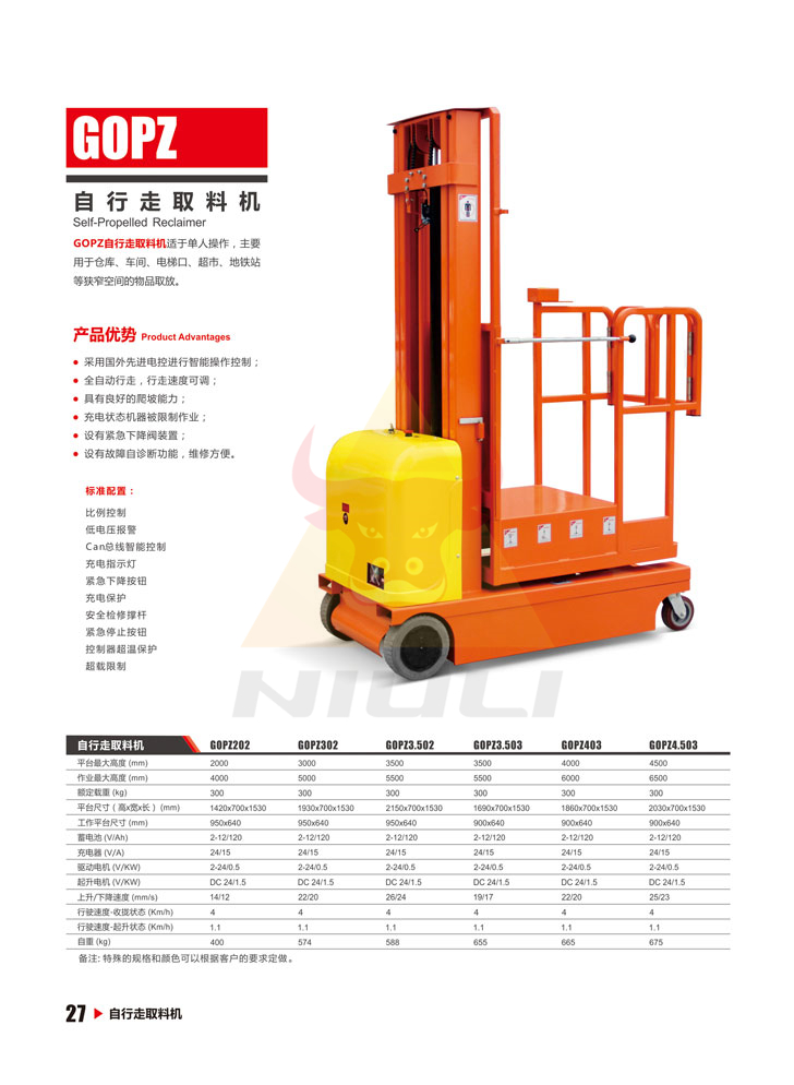 | 行駛速度-起升狀態(Km/h) | 1.1 | 1.1 | 1.1 | 1.1 | 1.1 | 1.1 |